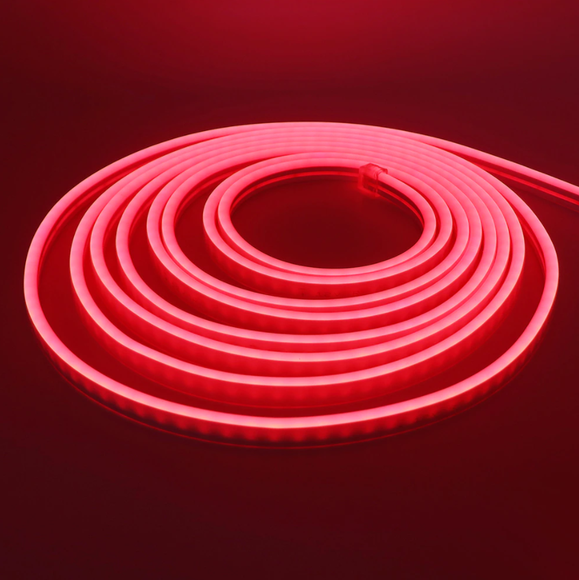 Светодиодный гибкий неон Красный 9.6Вт, 12В, сечением 6х12мм - идеально подойдет для декорирования и акцентной подсветки элементов интерьера. Красность резки - всего 10мм, позволяет более точно выполнить элементы декора, повышая класс готового изделия (например вывески). Материалы исполнения силикон+ПВХ и степень защиты изделия - IP65, позволяют использование во влажных помещениях, общественных местах с широким диапазоном температуры окружающей среды.